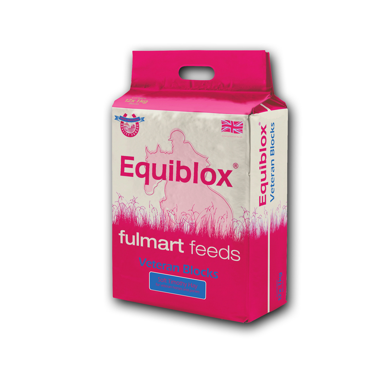 Fulmart Feeds Equiblox Veteran. Equiblox Veteran are specially designed hay blocks made from finely chopped, soft Timothy Hay.