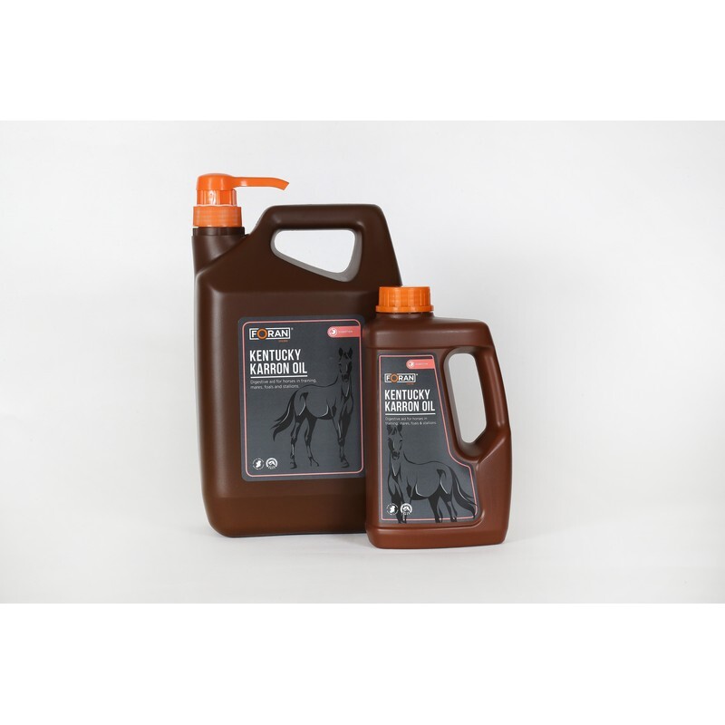 Foran Kentucky Karron Oil is a high quality flaxseed oil emulsion packed full of omega 3 6 fatty acids. Omega 3 can be low in preserved forages and concentrates so this supplement is especially useful for horses during the winter months when their coat may become duller than usual. Both fatty acids are essential for the immune system digestive health.