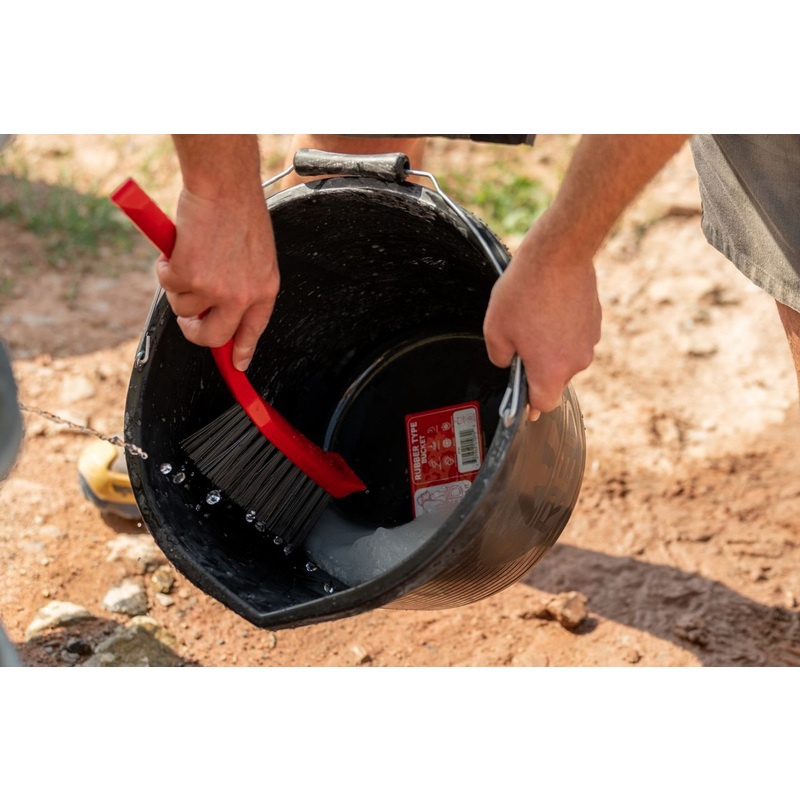 Red Gorilla Hand Brush Red. The new Gorilla Brush from Red Gorilla is a must for any yard, site, garden or home. Tackle mess using the new Gorilla Brush, the all-purpose cleaning tool featuring a built-in scraper head, heavy-duty non-absorbent bristles, long ergonomic handle. This brush is designed for efficiency and comfort. Strong, practical and built to last!
