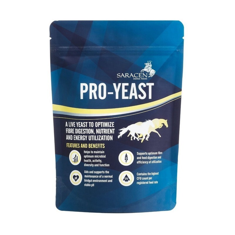 PRO-YEASTwill be replacing YEA-SACC from the 19th April. PRO-YEAST is a research proven live yeast from the Vistacell Saccharomyces cerevisiae strain, which helps to balance the gut flora in the hindgut. It is suitable for all types of horses and ponies to help maintain optimum microbial health. It is particularly useful for performance horses ponies who are training, travelling, and competing as it aids and supports the maintenance of a normal hindgut environment stabilises pH. PRO-YEAST can be top dressed onto a correctly balanced feed on a daily basis or used strategically during time of stress. PRO-YEAST when fed at the recommended daily dose of 10g will deliver 2g of the research proven Vistacell providing 2.5 billion saccharomyces cerevisiae cultures, which is the highest CFU count per registered feed rate. The 1kg PRO-YEAST pouch will last 100 days when feeding 1 horse and is a cost-effective supplement to help support hindgut health. In line with our ongoing sustainability promise the PRO-YEAST